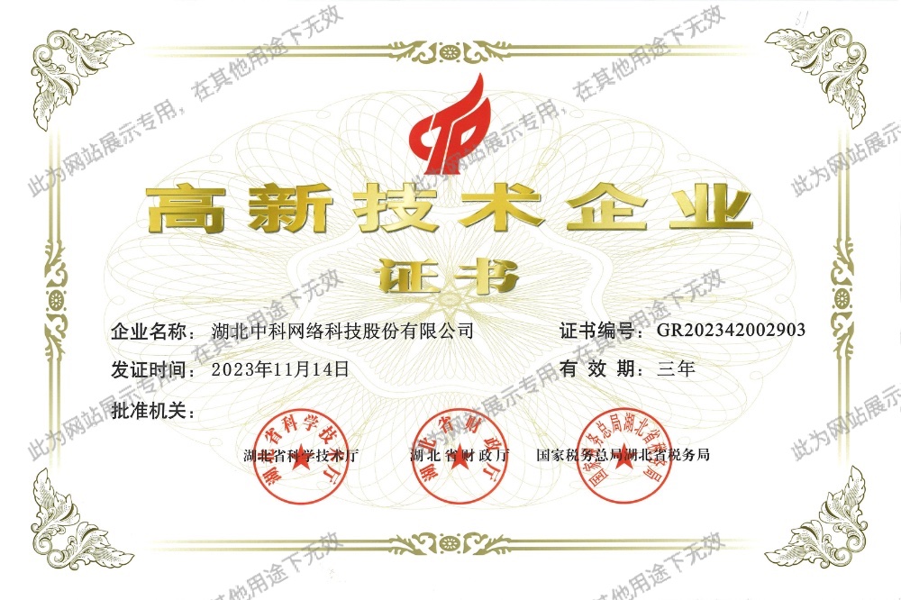 湖北中科網(wǎng)絡(luò)科技股份有限公司成立于1998年5月,注冊(cè)地為武漢市武昌區(qū),總部位于中國(guó)光谷。是智能化、信息化行業(yè)的領(lǐng)軍企業(yè),國(guó)家認(rèn)定的高新技術(shù)企業(yè)、湖北省專精特新企業(yè)。